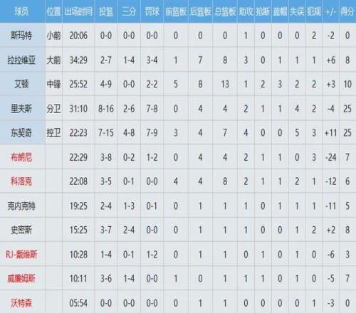 太阳全队数据如下: