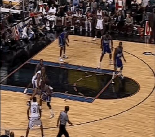 半场结束时,76人落后雄鹿7分。易边再战,艾弗森看上去逐渐适应了比赛节奏,他在阵地战中愈发活跃:先是通过手递手飙进三分,那个赛季他很快成为联盟排名前列的三分手;随后,随后又两次在底线区域觅得机会,一次补篮、一次空切,展现出敏锐的无球嗅觉。