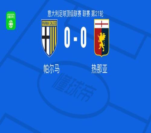 北京时间1月18日意大利足球顶级联赛 联赛 第21轮,帕尔马主场对阵热那亚。最终比分帕尔马 0-0 热那亚。